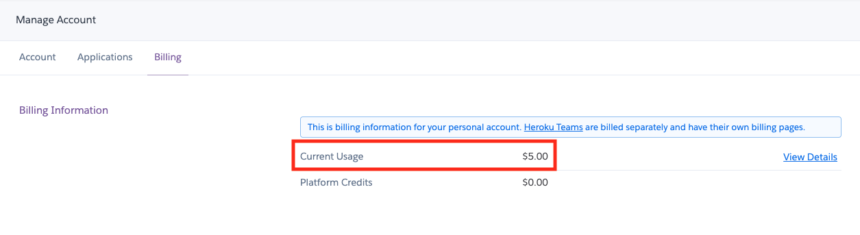 - Tuesday, the same user views their Heroku usage and the Current Usage is $5.25